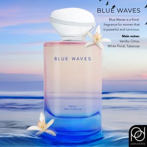 Blue Waves, inspired by My Way, is a floral fragrance for women that is powerful and luminous. A vibrant top of bergamot with orange blossom in the opening, with a bright floral heart contrasted with sweet vanilla and warm musk in the base. An exploration of new horizons.